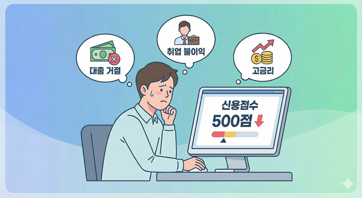 신용점수에 가장 치명적인 독은 바로 '연체'입니다. 10만 원 미만의 소액이라도 5영업일 이상 연체되면 신용평가사에 정보가 공유되며, 점수가 폭락하는 것은 물론 기록이 최대 5년까지 남을 수 있습니다.