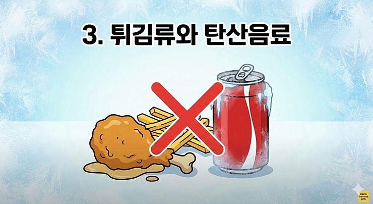 - 문제점 : 튀김류는 바삭한 튀김옷이 핵심입니다. 냉동실에 보관하면 수분으로 인해 눅눅해지고, 냉동실 특유의 잡내가 배어들 수 있습니다. 또한, 기름기가 많은 튀김은 냉동 보관 중에도 기름이 산패될 위험이 있어 맛과 건강을 해칠 수 있습니다.